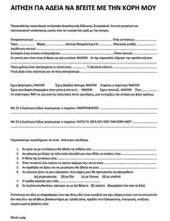 Αίτηση για άδεια να βγει κάποιος με την κόρη σας